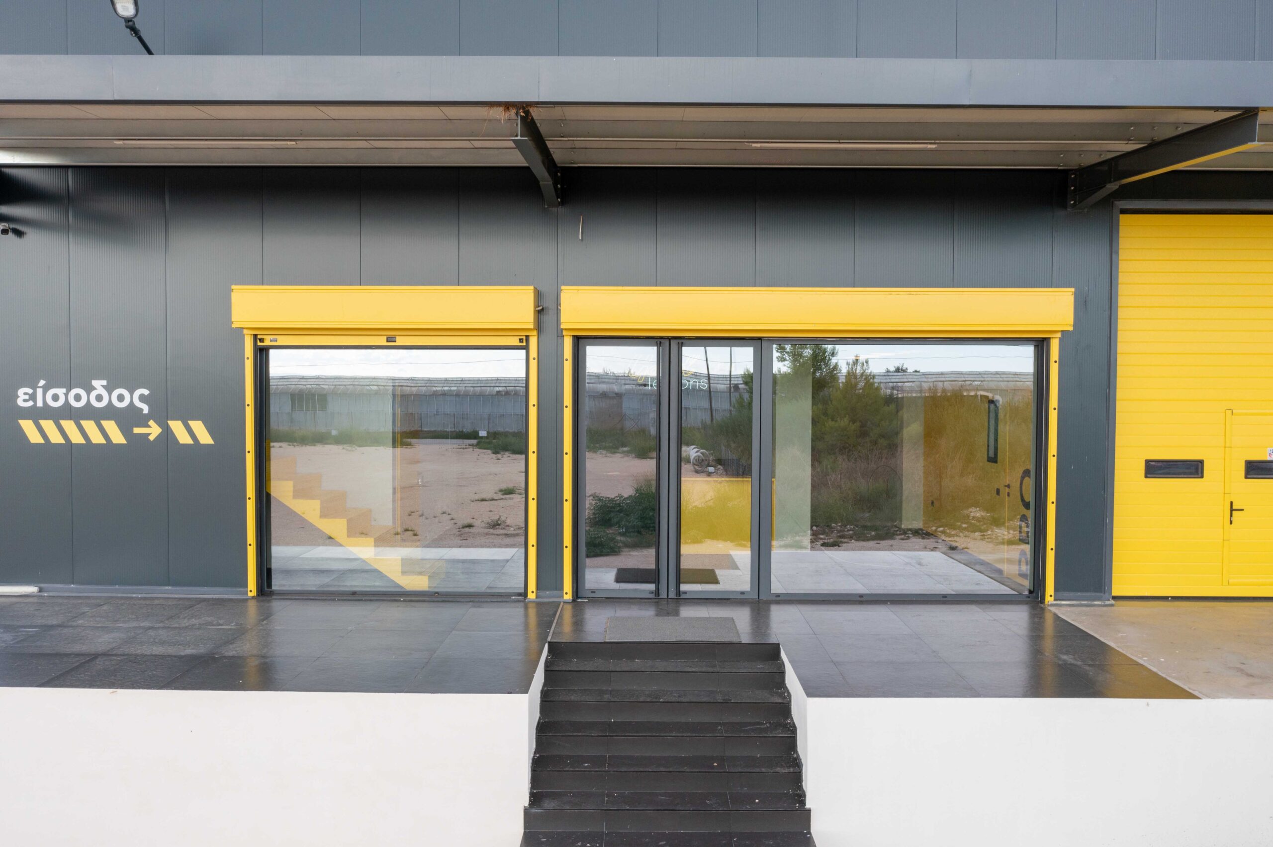 Το πρόσφατα σχεδιασμένο μας συσκευαστήριο για λεμόνια είναι ένα κομψό και μοντέρνο βιομηχανικό κτίριο. Με συνολική επιφάνεια 600 τετραγωνικών μέτρων, το κτίριο είναι κατασκευασμένο από σκούρα γκρι μεταλλικά πάνελ και ανοίγματα αλουμινίου, δίνοντάς του μια δυνατή και βιομηχανική εμφάνιση. Η χρήση σκούρου γκρι χρώματος στο εξωτερικό επιτρέπει στο κτίριο να εναρμονιστεί με το περιβάλλον του, ενώ τα ανοίγματα από αλουμίνιο δημιουργούν αντίθεση και προσθέτουν βάθος στην πρόσοψη.