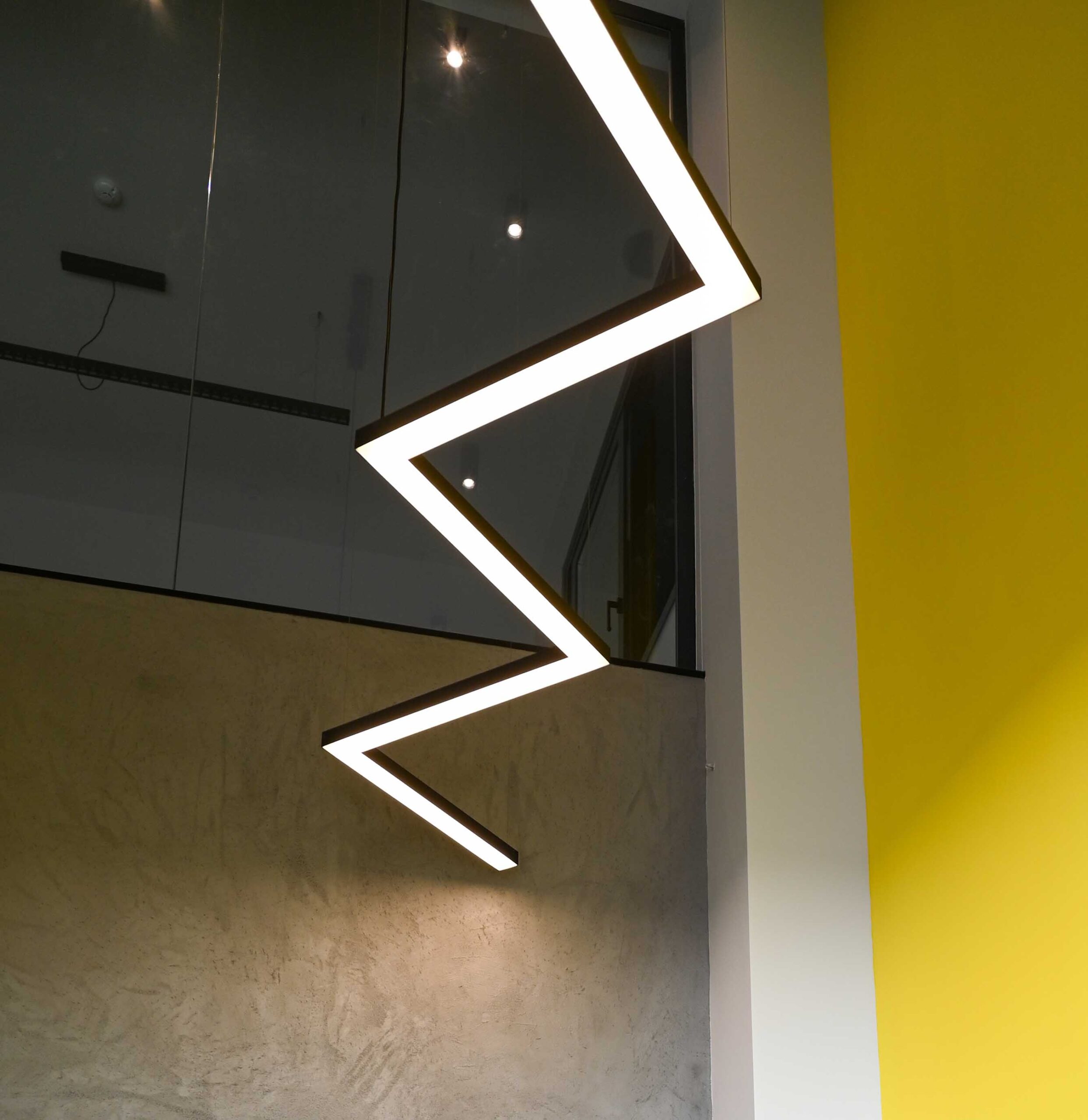 Για να βελτιώσουμε τη λειτουργικότητα του κτιρίου, έχουμε σχεδιάσει ένα σύστημα φωτισμού που μπορεί να ανταποκριθεί στις ανάγκες του συσκευαστηρίου, παρέχοντας επαρκή φωτισμό στους εργαζόμενους για την εκτέλεση των καθηκόντων τους. Ο πρώτος όροφος του κτιρίου στεγάζει ένα λογιστικό γραφείο, το οποίο χωρίζεται από τον υπόλοιπο όροφο με μια γυάλινη αίθουσα εργασίας, παρέχοντας στον ιδιοκτήτη έναν ιδιωτικό χώρο για να κάνει συναντήσεις.
