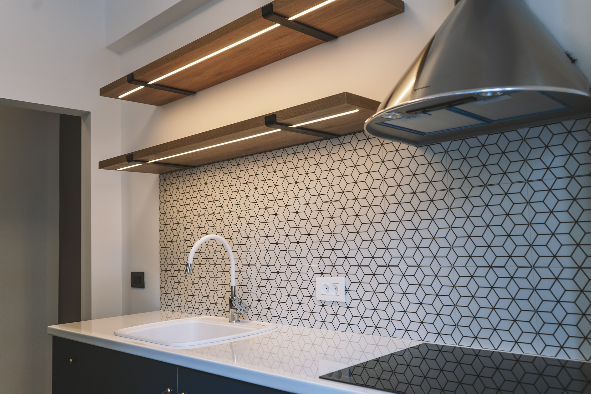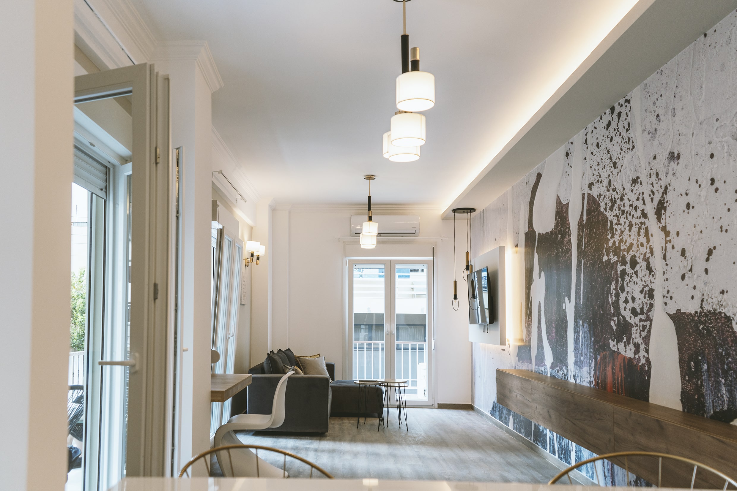 The apartment is located in an apartment building from the 80s. With the removal of the dividing wall, between the kitchen and the living room, which in the previous condition remained cut off from each other, they are given different meanings and acquire their own multiple importance in the life and use of the residence. New spatial and functional associations are created with the living area and the kitchen design responds to modern trends. The design approach followed is characterized by simple lines and clean geometries. The design philosophy was based on achieving the satisfaction of the modern needs and desires of the owner. The bright colors in the furniture and the use of the wallpaper in the living room and the bedroom are a focal point and the focus of the user’s interest.