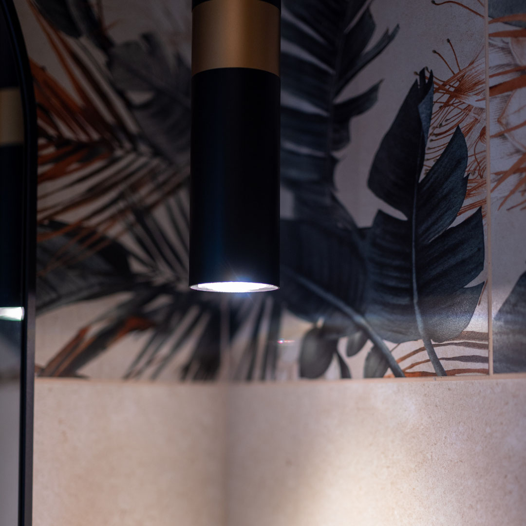 Η μελέτη φωτισμού σχεδιάστηκε ώστε ο χώρος να λειτουργεί παραγωγικά και ισορροπημένα καθ’ όλη τη διάρκεια της ημέρας. Ο έμμεσος φωτισμός και οι φωτεινές χαράξεις ακολουθούν τη γεωμετρία του χώρου, ενισχύοντας τη χωρική συνέχεια χωρίς να επιβαρύνουν αισθητηριακά το περιβάλλον.